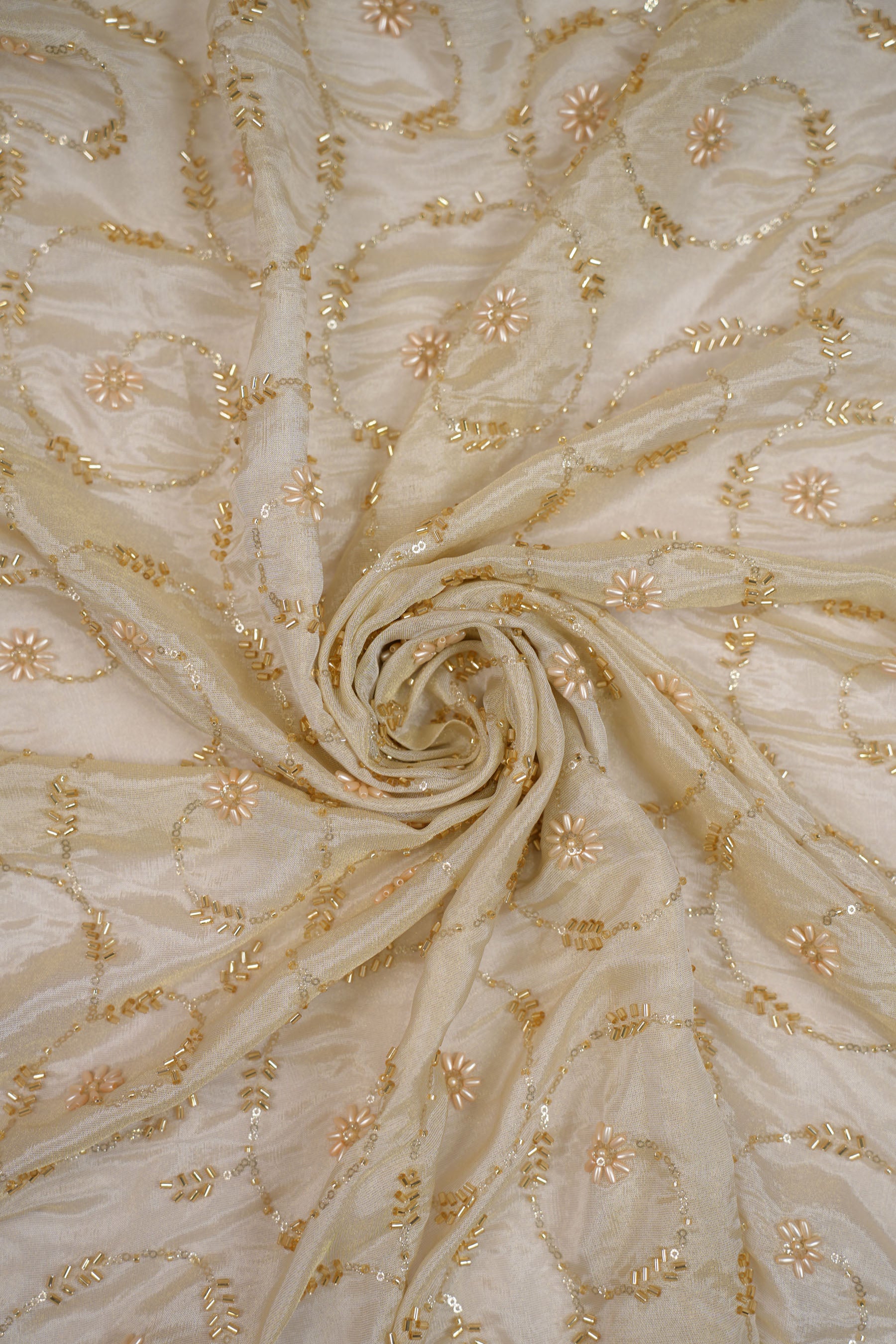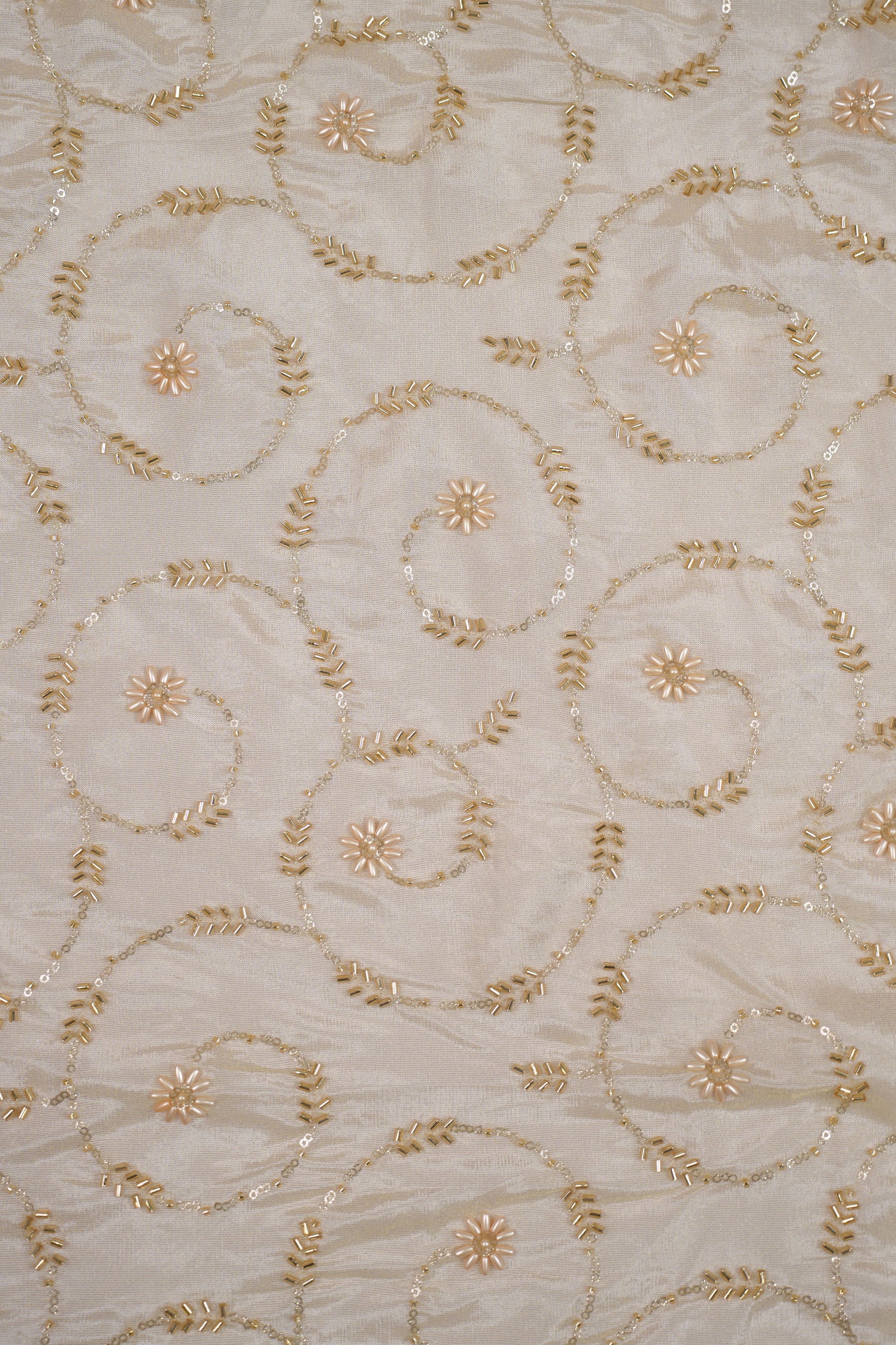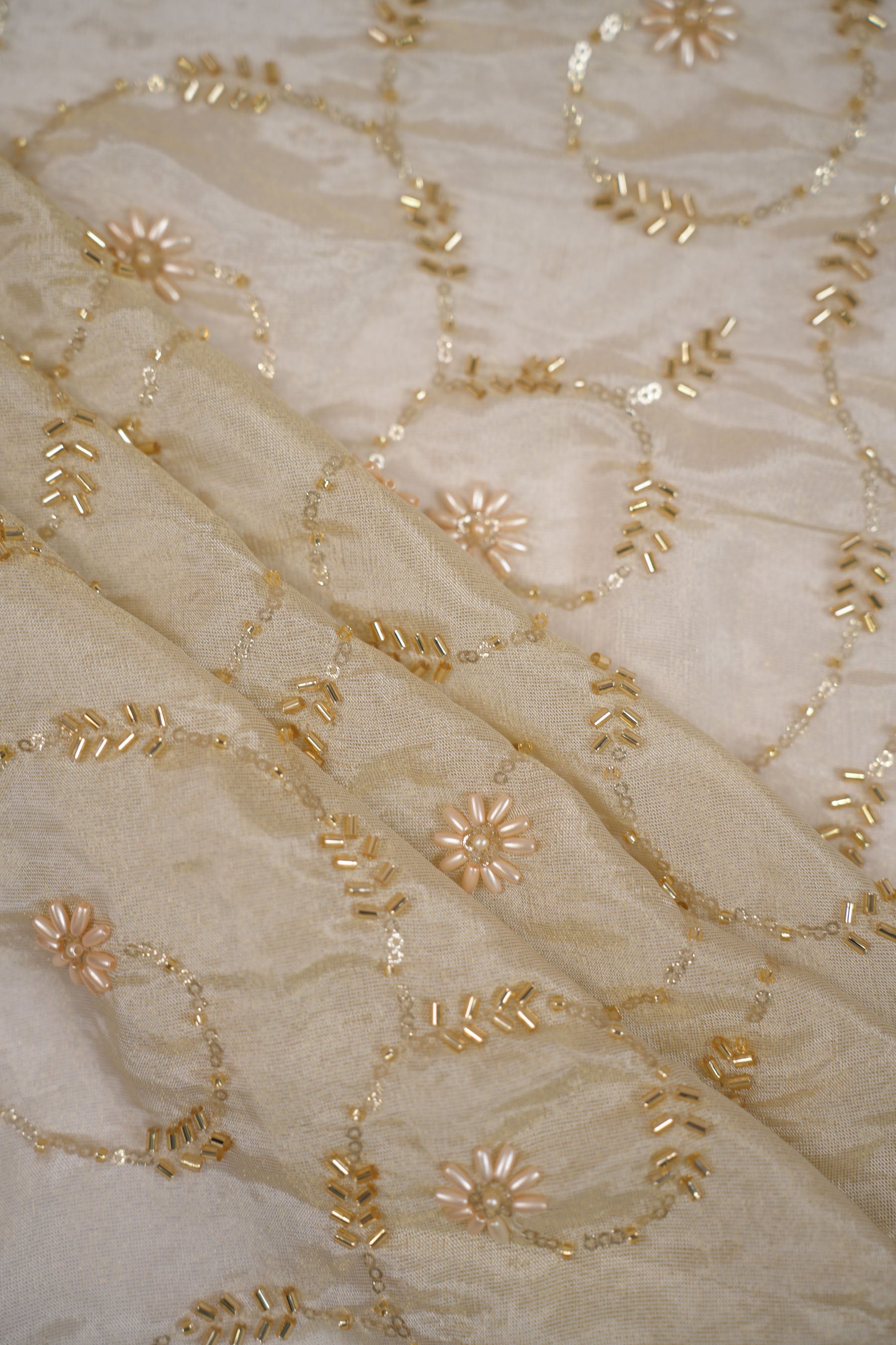 Majestic Bloom Weave Pearl Embroidered Tissue Fabric dyeable