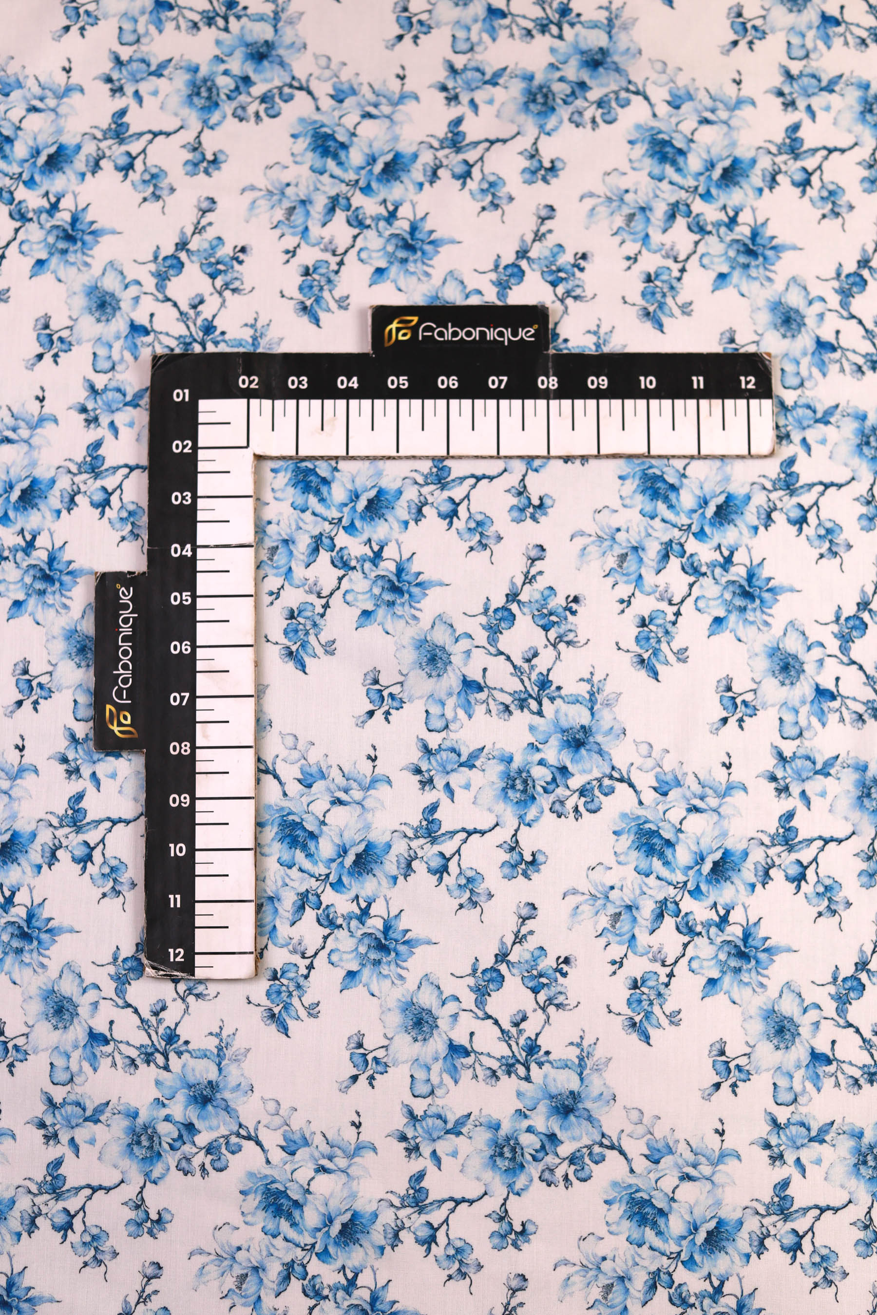 Ocean Mist Flora Muslin Printed Fabric non-dyeable