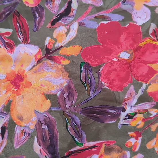 Olive Bloom Crepe Silk Fabric non-dyeable
