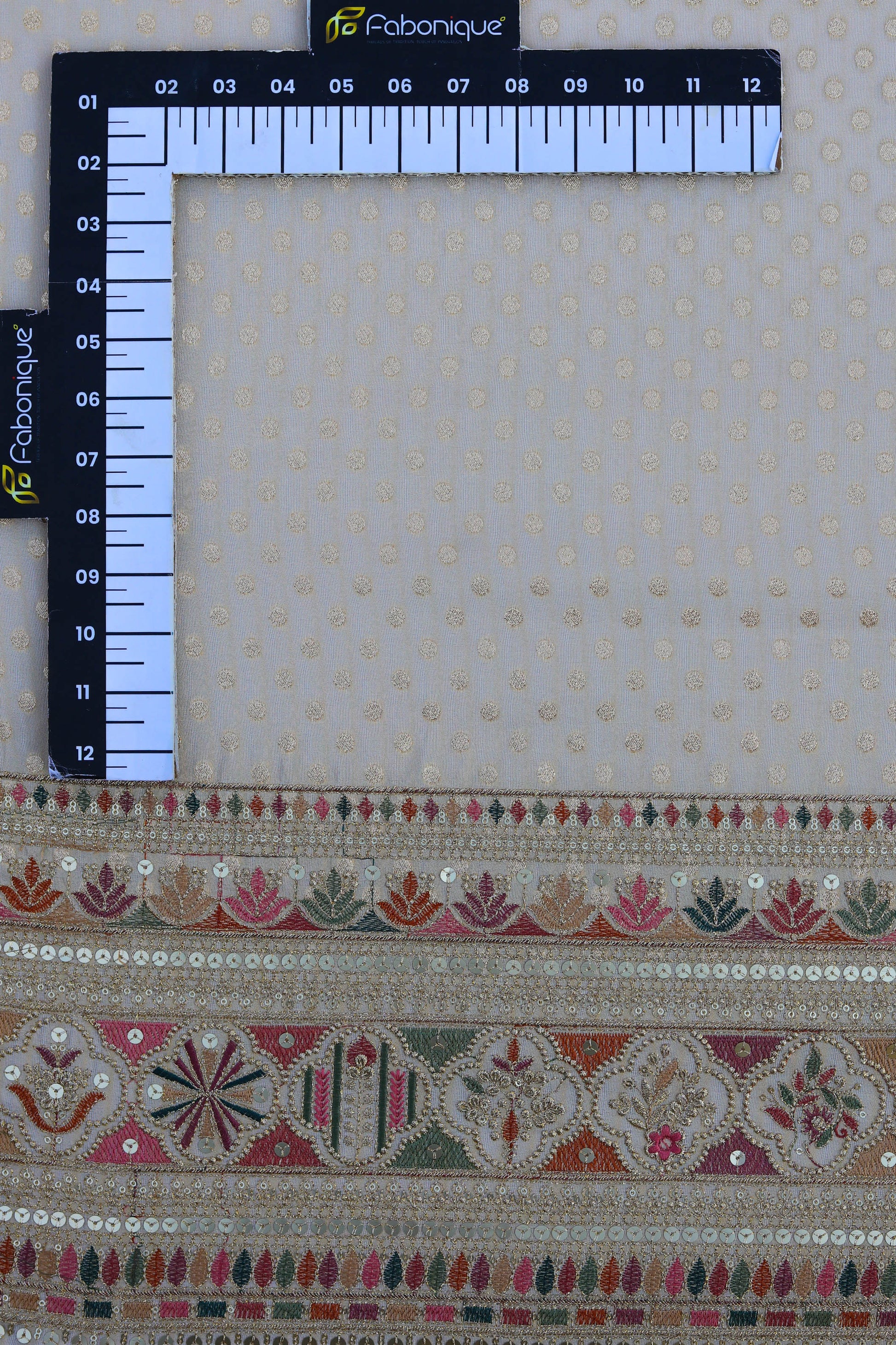 Pure Banarasi Tissue Brocade Fabric with Embroidered Polka Dots and Sequined Border dyeable