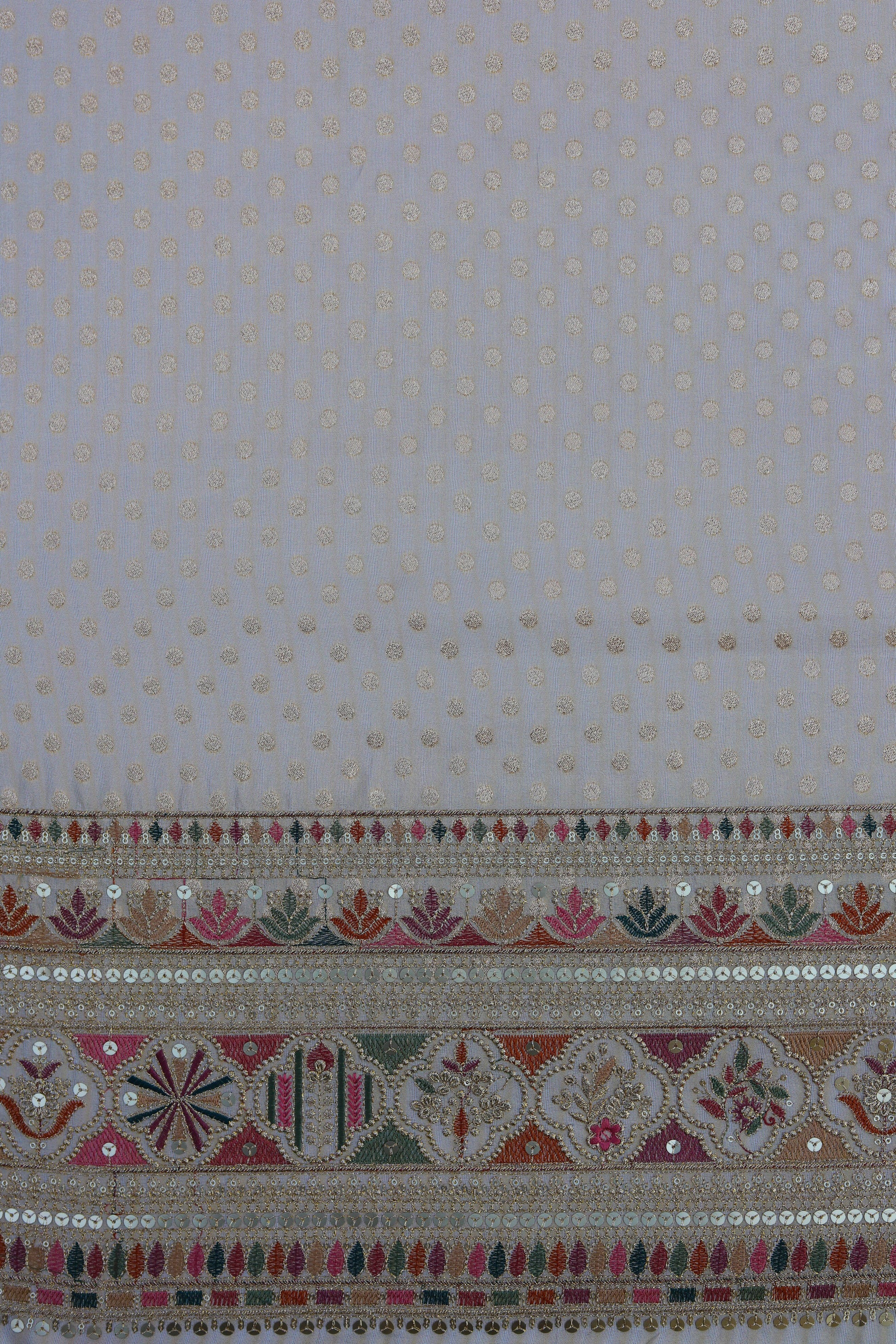 Pure Banarasi Tissue Brocade Fabric with Embroidered Polka Dots and Sequined Border