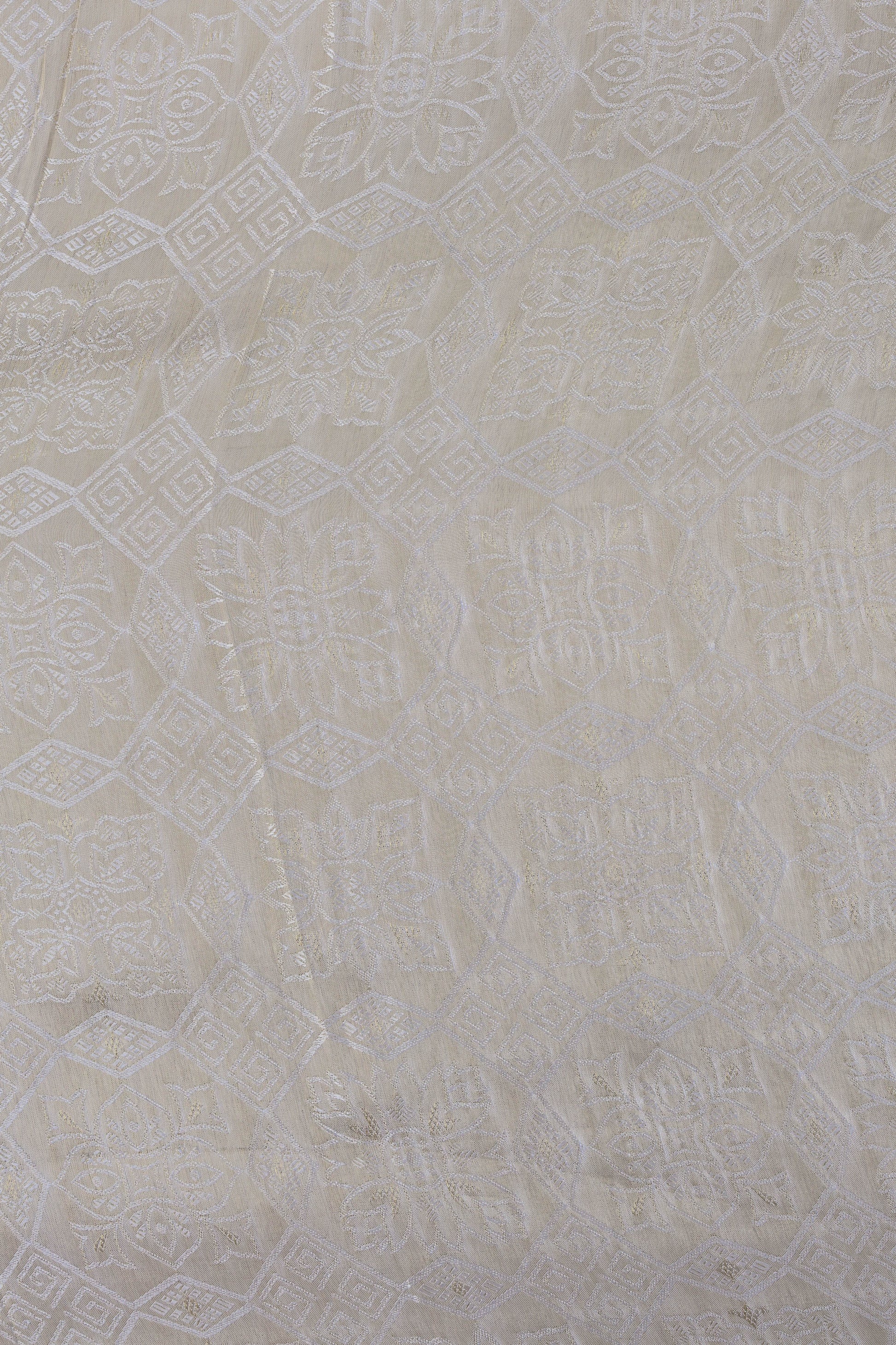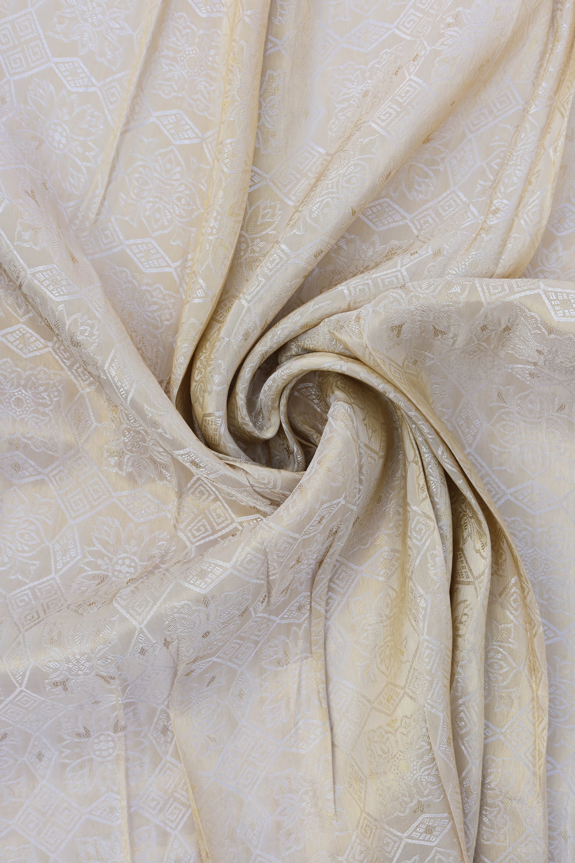 Pure Tanchoi Silk Floral Fabric with Ornate Geometric Design and Lustrous Finish dyeable
