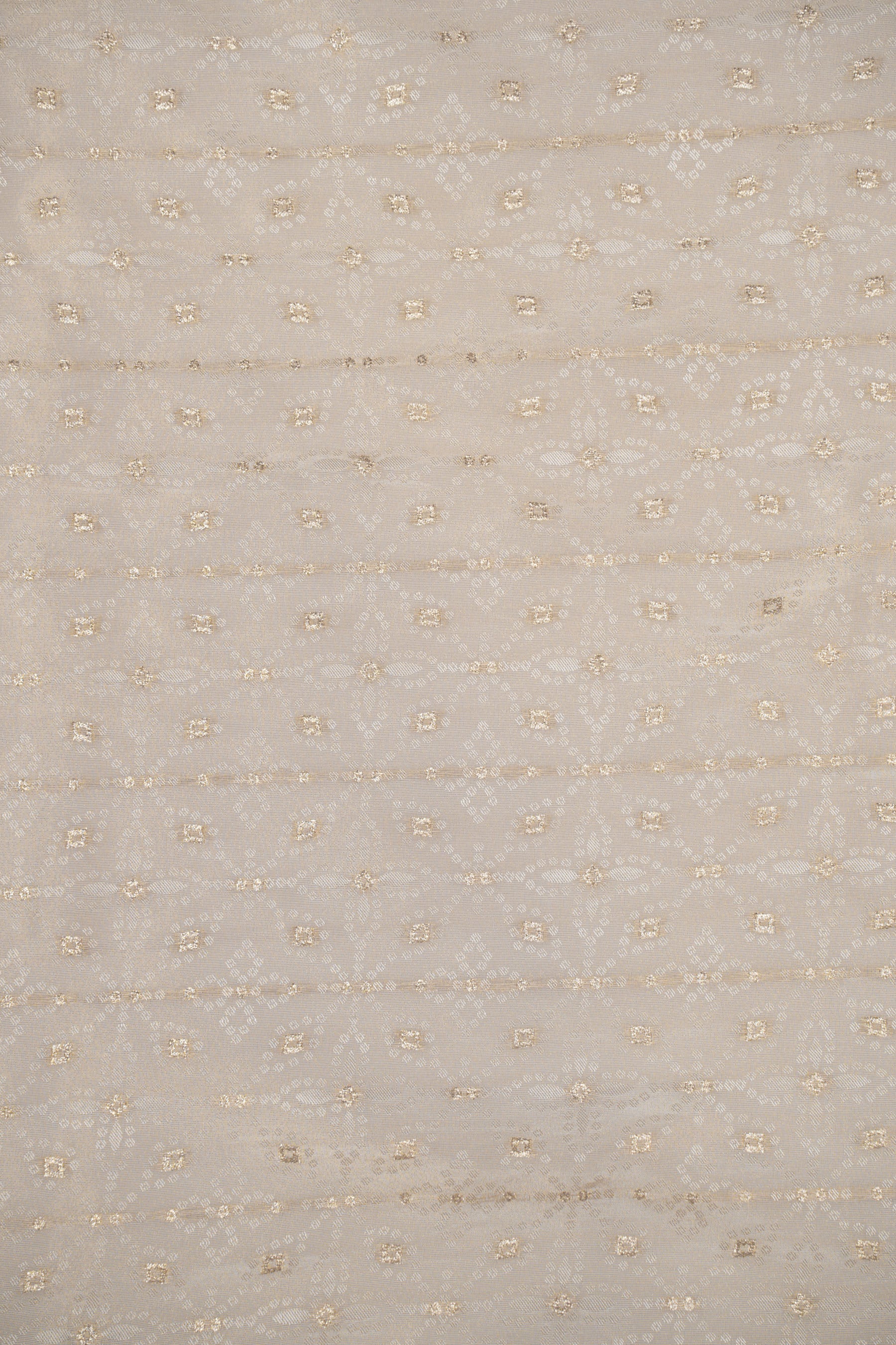 This exquisite jacquard fabric features a woven self-design pattern in a subtle champagne-gold tone. The motifs are delicately crafted using metallic zari threads, creating a rich yet understated look.