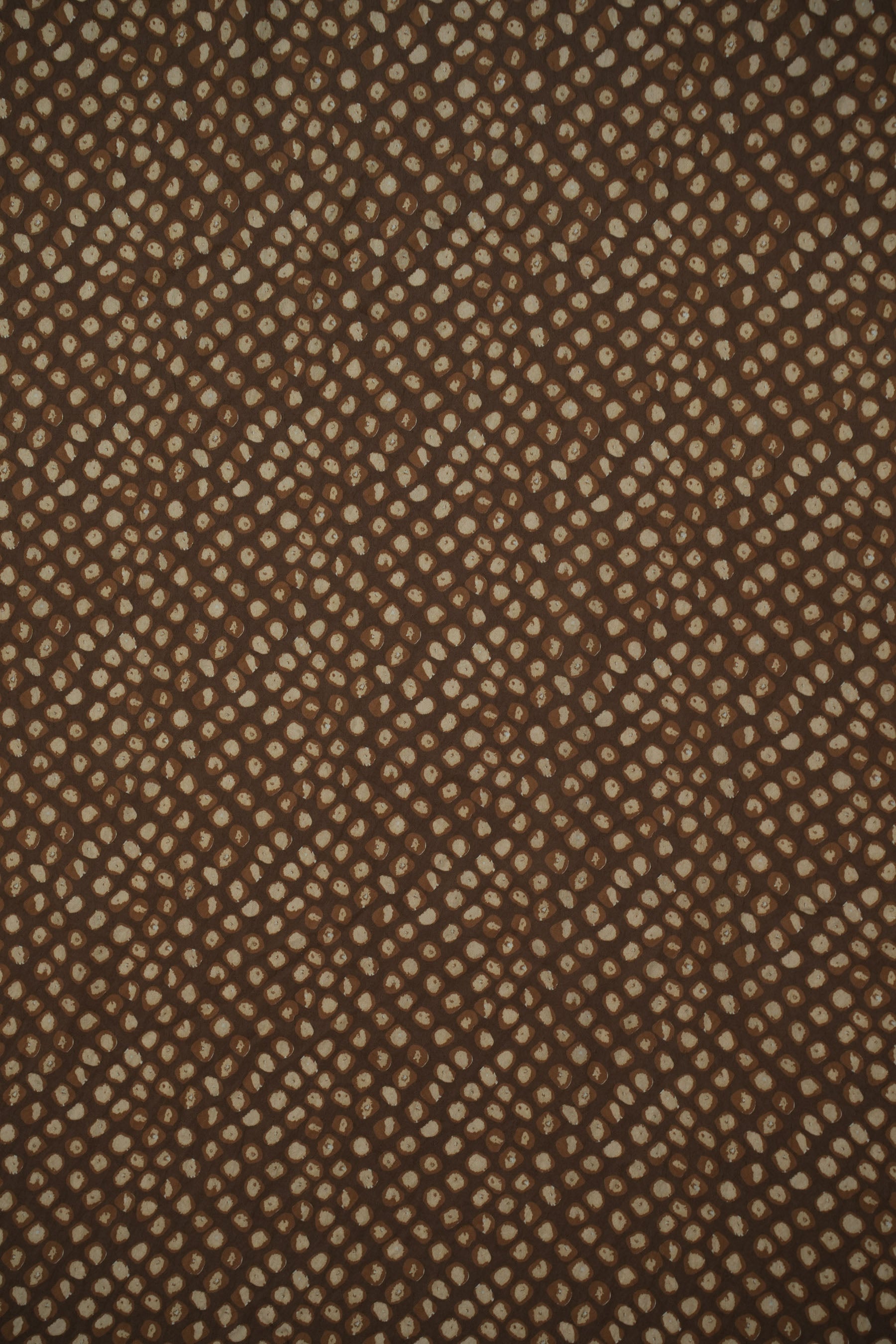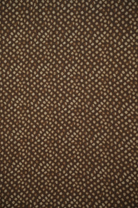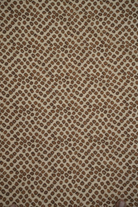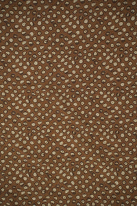 This fabric features a rich amber-brown base with irregular cream and chocolate brown spots that resemble an artistic animal print, evoking a sense of wild sophistication. The design feels bold yet classy, making it perfect for statement pieces and high-fashion looks. Crafted from a premium blend of 85% pure viscose and 15% nylon, it is incredibly soft to the touch, breathable, and drapes fluidly with a slight sheen for added elegance.